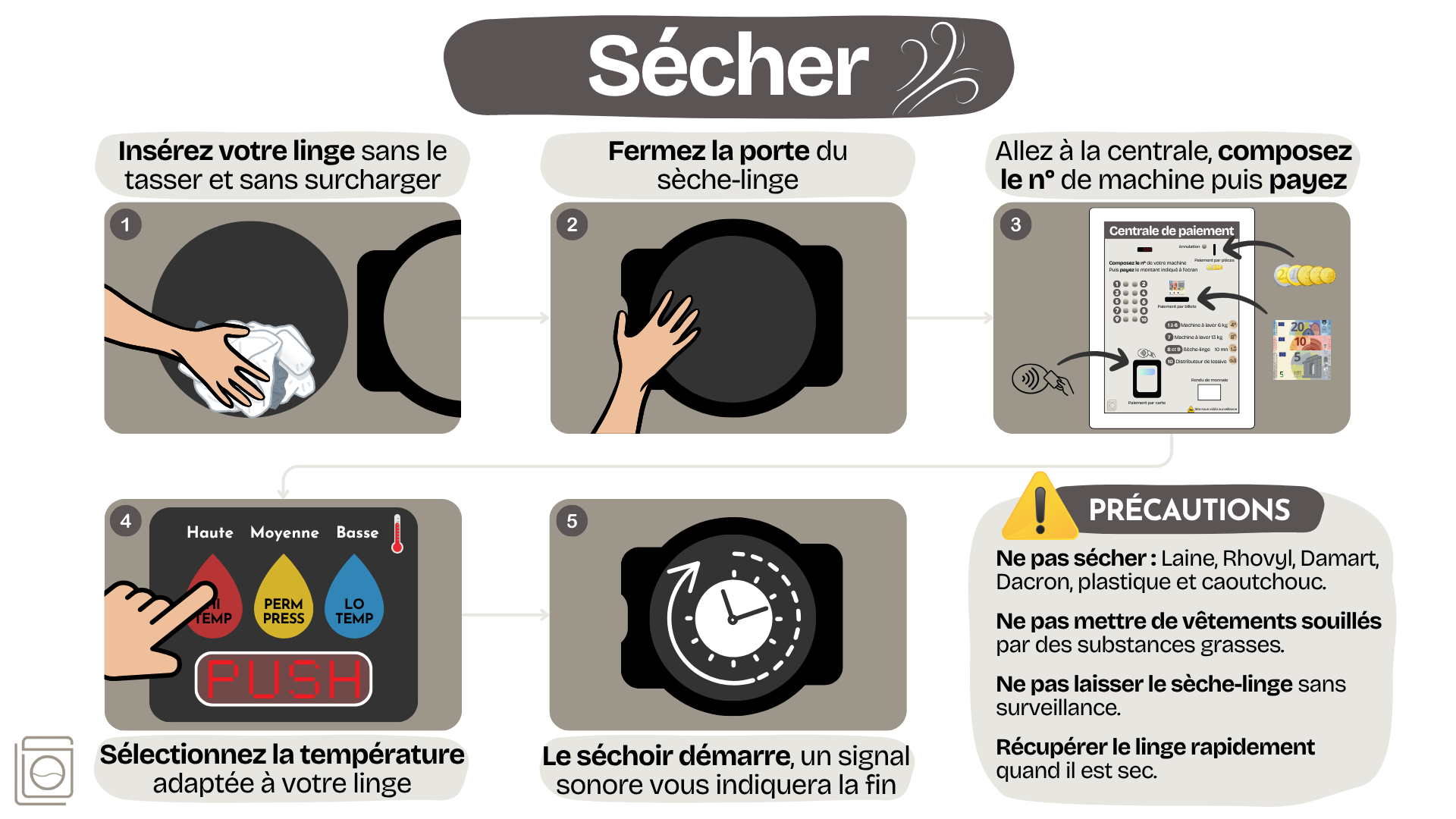 Respectez les indications d’entretien renseignées sur les étiquettes des vêtements concernant la température de lavage, le type de lessive, et les instructions de séchage.